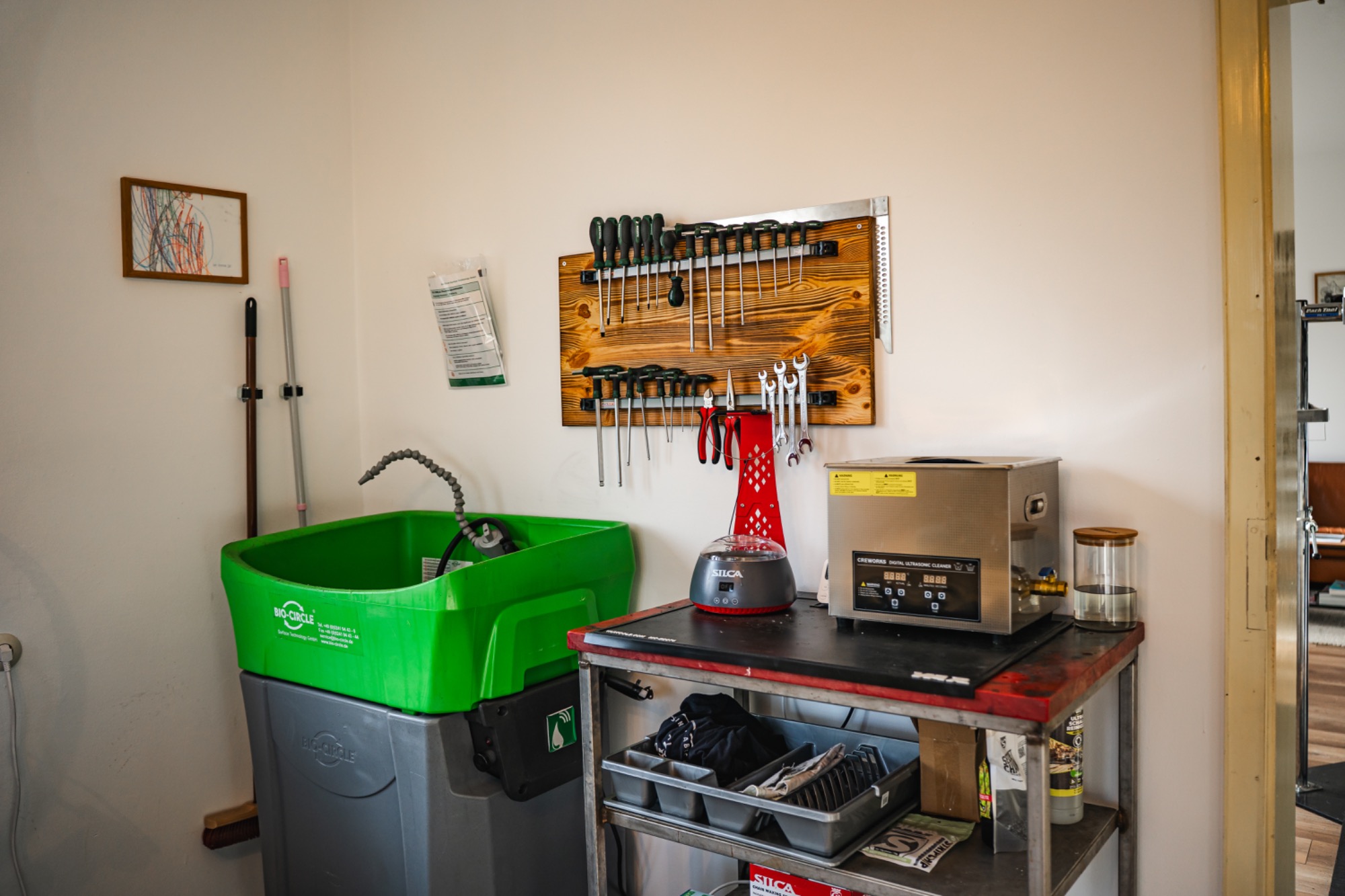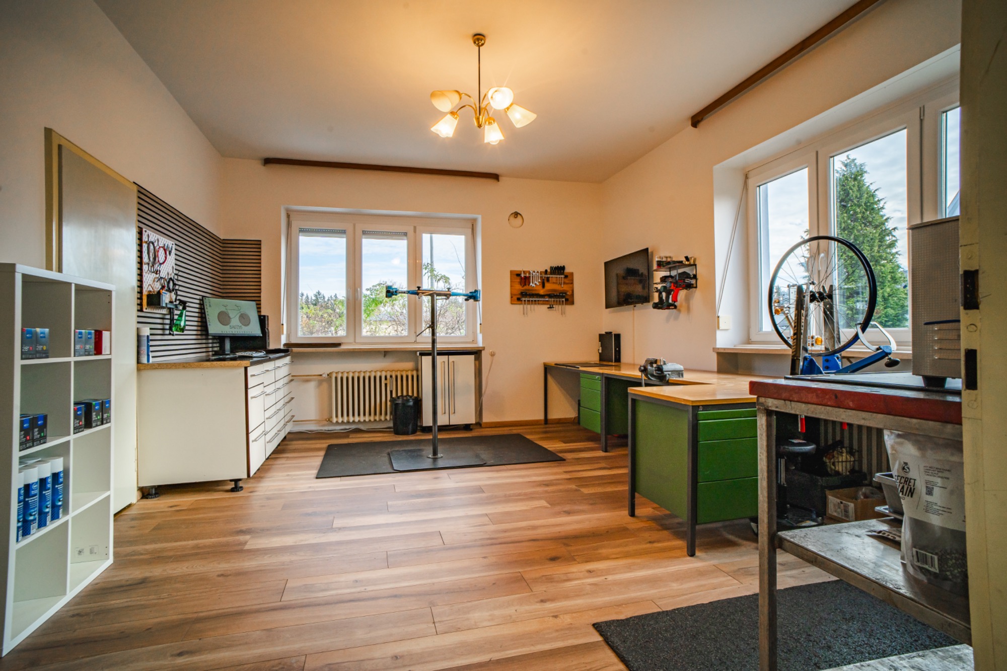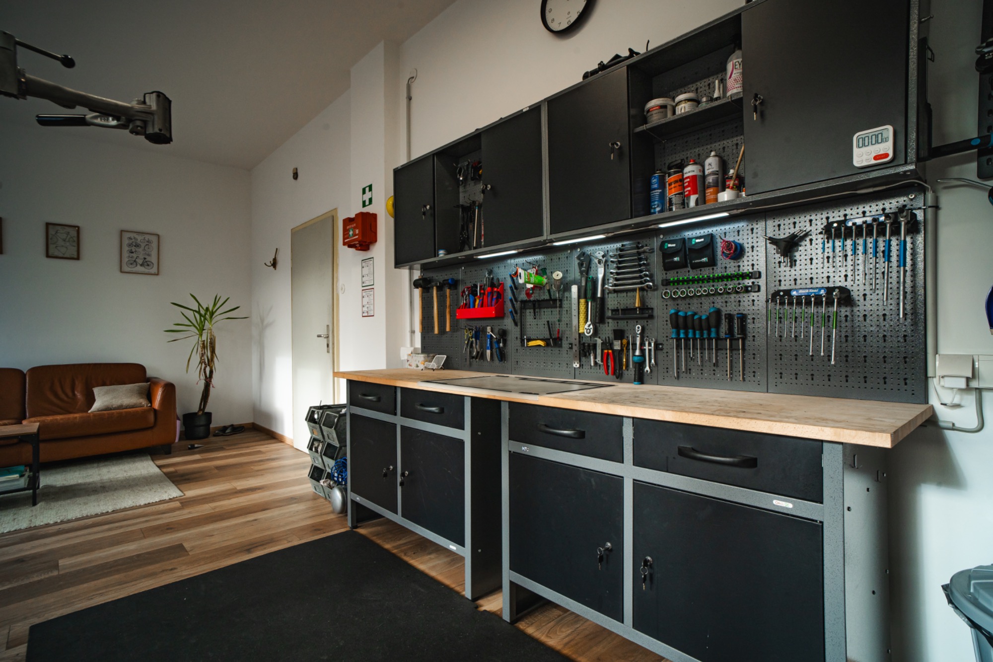 Die Kursräume befinden sich in Neugablonz (Ortsteil von Kaufbeuren), welches in der Nachkriegszeit als Wirtschaftswunder und mit seiner Modeschmuck Industrie bekannt geworden ist. In einem ehemaligen Gablonzer Schmuckbetrieb habe ich hier mit einer Mischung aus Wohnzimmer und Werkstatt eine gemütliche Atmossphäre zum Schrauben lernen geschaffen.